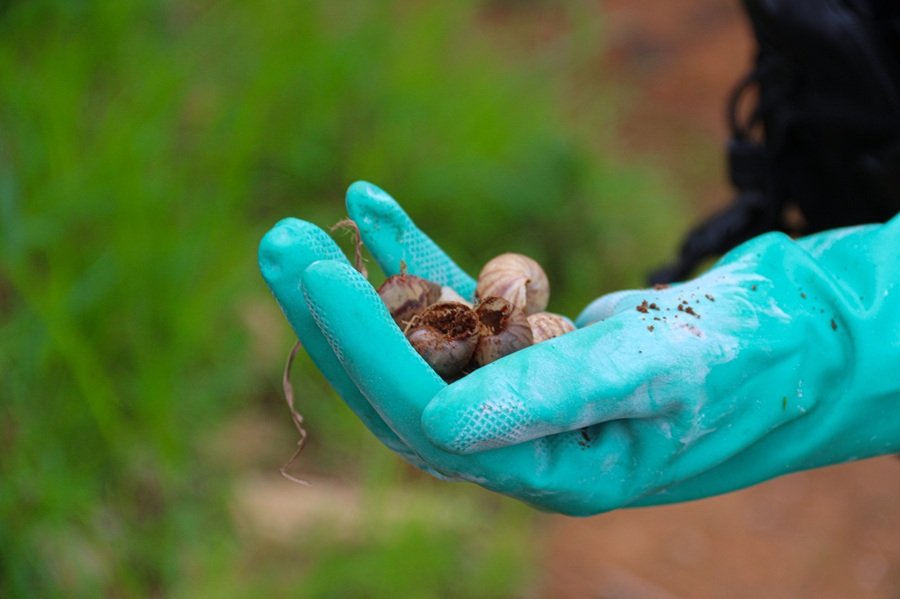 • Utilize equipamentos de proteção: Ao manusear os caramujos, é essencial usar luvas e saco plástico para evitar o contato direto com a pele e a mucosa.